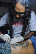 | Adeptos da tatuagem escolhem a estação para gravar desenhos e frases no corpo |